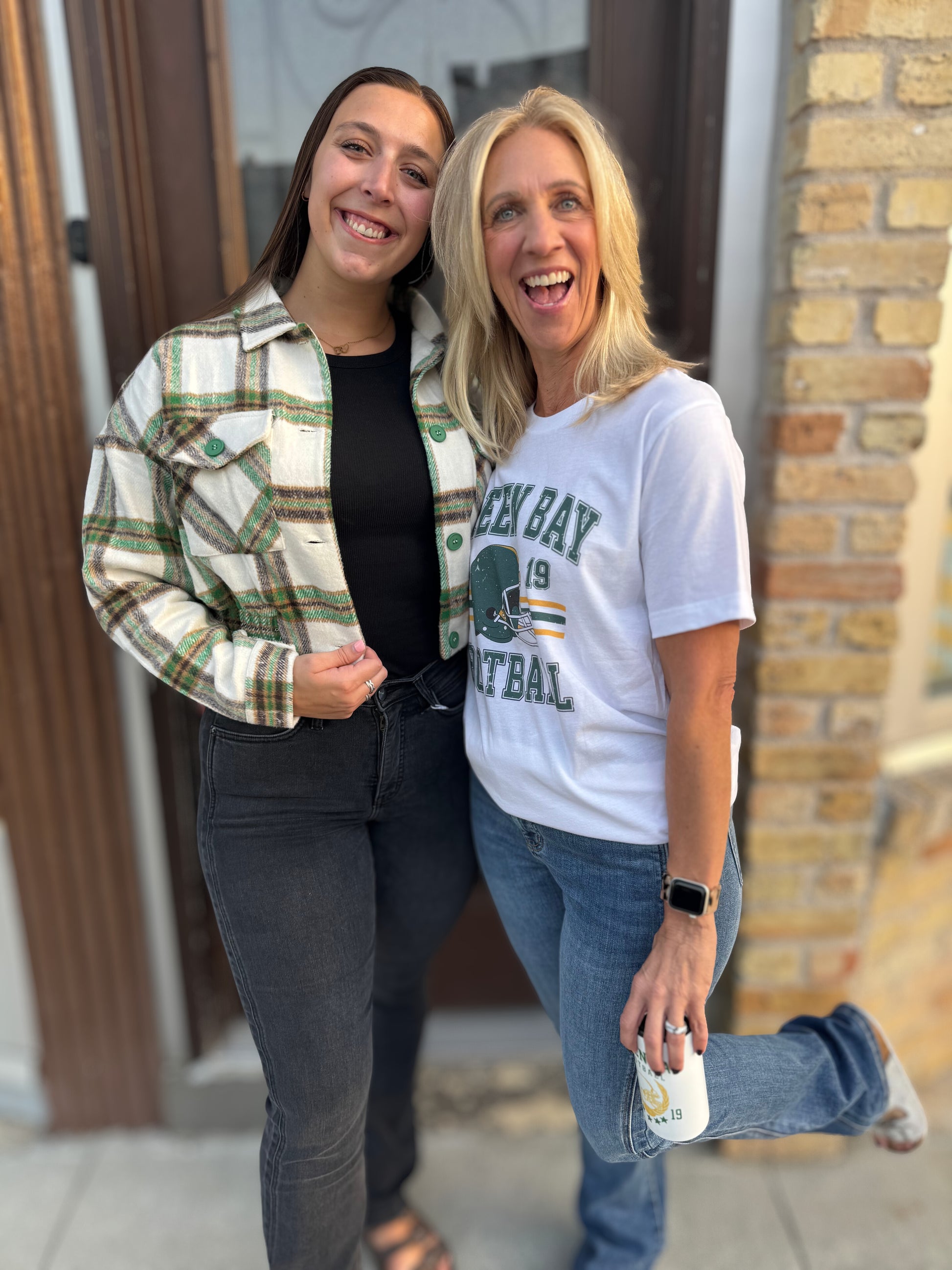 Charming and vibrant plaid print jacket, featuring button-down design and long sleeves. Stylish cropped silhouette emphasizes the trendy appeal, while an elastic waist adds an element of comfort and flexibility. Complete with front pockets!